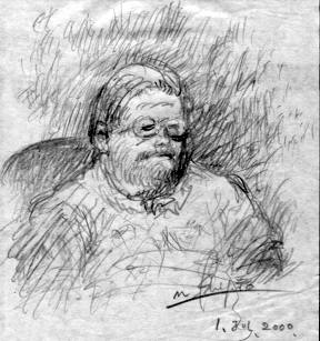 What it was became evident afterward, when the attendees of the panel (including some in costume from the show) got together for a photo, and Mr. Ishiguro handed me a small slip of note paper with what he had been writing: a small sketch of me! Of course I was astounded and incredibly honored, and this sketch has become my avatar icon on a number of chat forums.