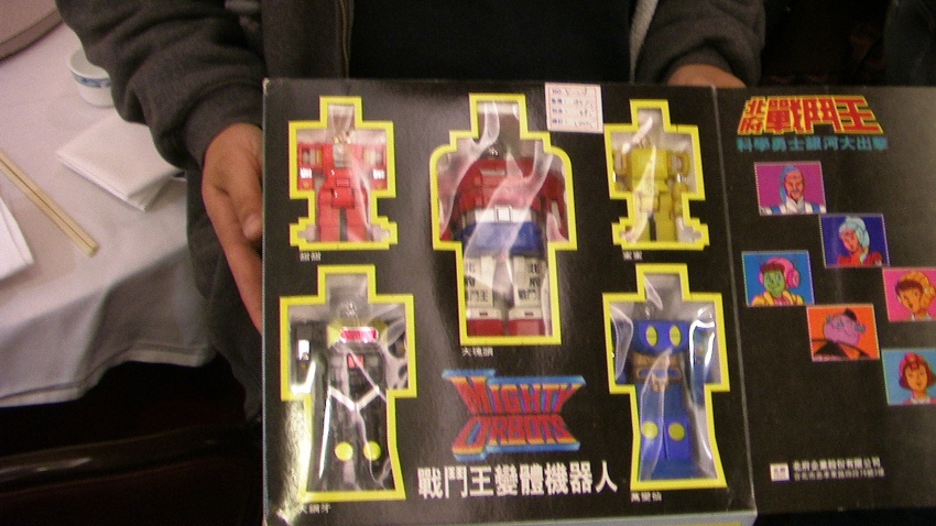 We had this gathering in a Chinese restaurant, of all things, amongst 1960’s and 1920’s dressed drunken cross-dressing acid tripping actors interspersed with Asian families, French speaking Goldrake lovers, maybe one food server, YoYo fighting school girl Anime lovers, mixed with Vintage chogokin, models, noodles, roasted chicken, dusty models, Sake, tea, Voltron, lazy Susans, crab parts, spicy steaming soup, beer, and toys. It was harmony on a freak-of-nature level unlike any surreal Clock-Work-Orange moment in my life.