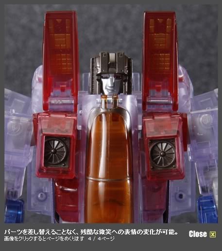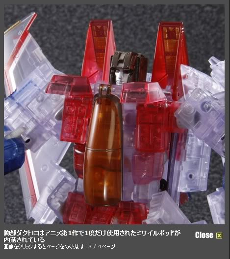 MP-03G Ghost will have some nice red and blue translucent parts to go with clear molded body panels. Below the clear, you can see most of the inner mechanics.