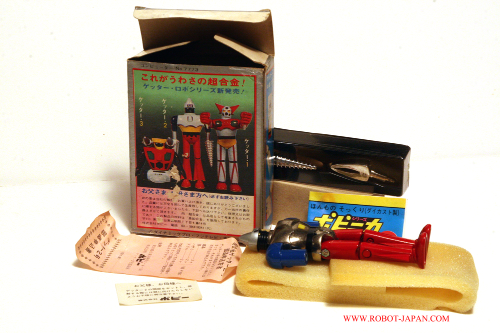 • Drill Missile (AKA Drill Punch, Drill Attack or Jet Drill) – The drill spins quickly and is launched at an opponent like a rocket. The aftereffects of the attack vary by series and battle – sometimes the drill returns to the Getter, sometimes it falls to the ground, and sometimes it explodes. Losing the drill does not prevent the Getter from changing forms.