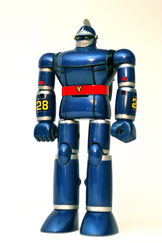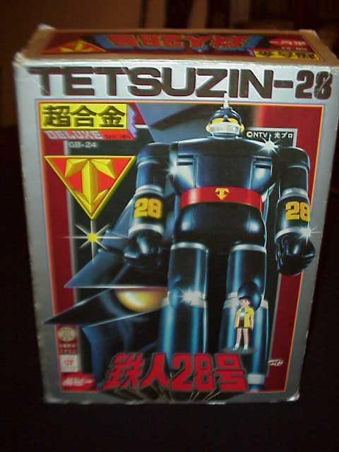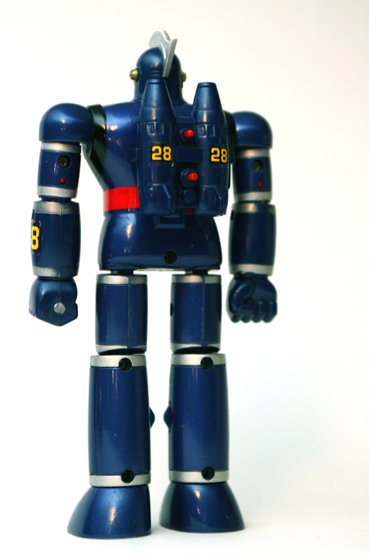 Tetsujin 28 DX comes with a jet pack, a loader crane, missiles, pilots, and robots. Missiles fire from the chrome chest (hidden launcher), and then the fists fire off.