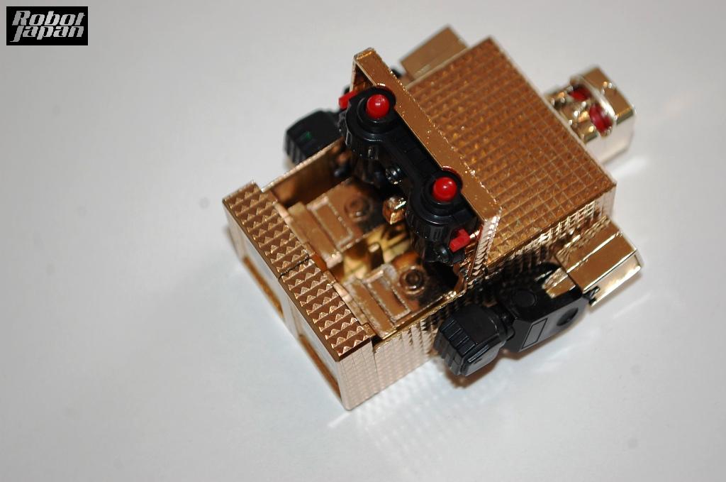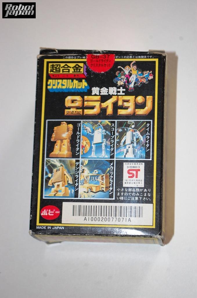 This is Gold Lightan, produced by Popy. There have been several bootlegs, reissues, and reimaginings of this toy, but this is the original diecast release. The box is actually quite small compared to other Popy toys. The sides feature the same textured gold finish artwork as you find on the tor itself.