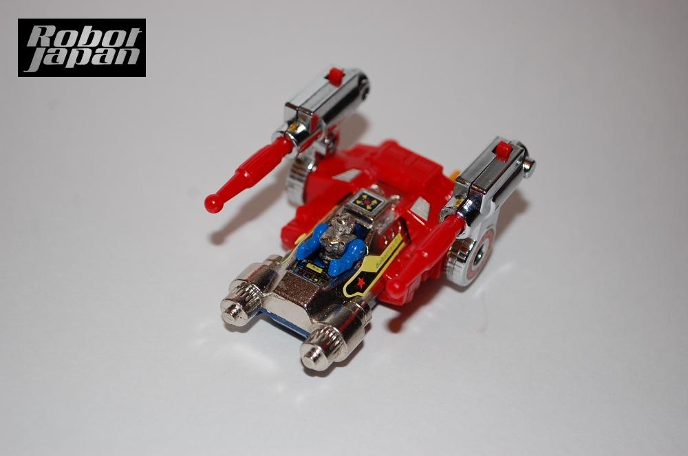 These are the three vehicle modes. All three feature missile launchers and include seats for the Diaclone drivers. Unfortunately, the drivers on this KO do not include the magnets on the feet that are found on the original Takara toy.