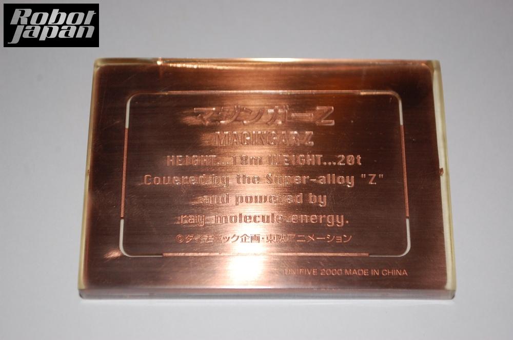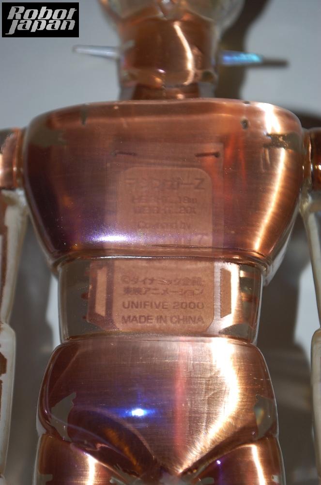 This is the Desktop Model of Mazinger Z made by Unifive. This is essentially a transparent statue (no moveable parts) with interior copper mechanics to create an amazing display piece. It also comes with a plaque made in a similar fashion. Unifive also made three other figures in this series – Tetsujin 28, Astroboy, and Gundam RX-78.